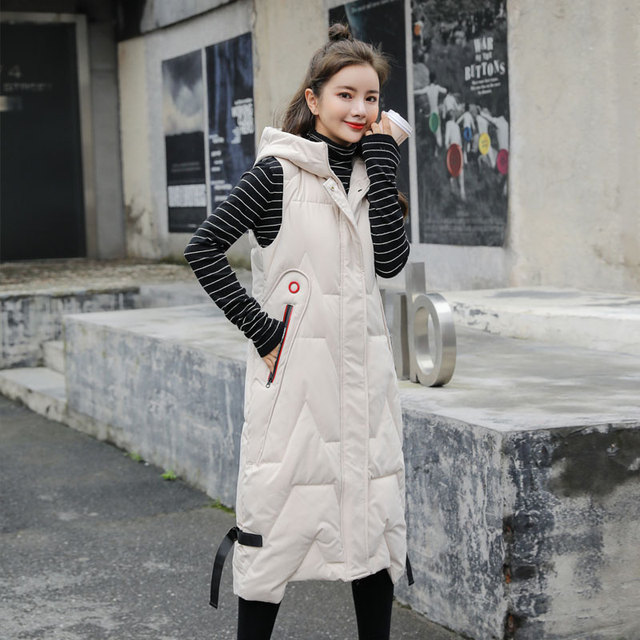 Winter Long Vest Women’s Solid Hooded Pockets Zipper Padded Ladies Casual Sleeveless Jacket Warm Quilted Vest for Female