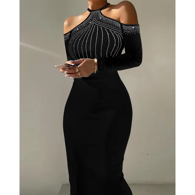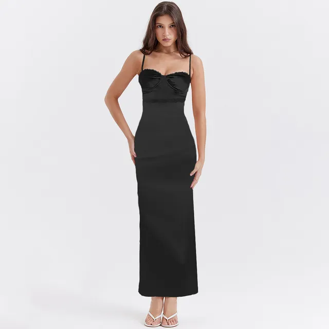 Black Long Bodycon Dress Women Summer Sleeveless Blackless Halter Neck Spaghetti Strap Dresses High
