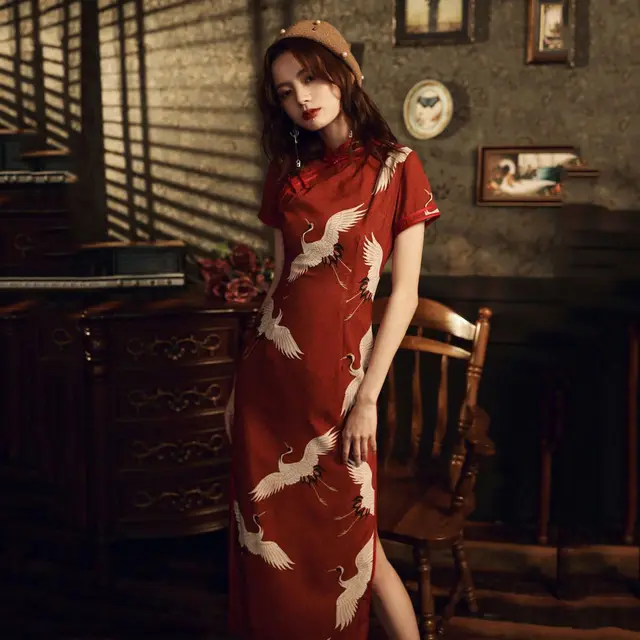 Dress Improved Chinese Cheongsam for Girls Women Long Red Traditional Dress