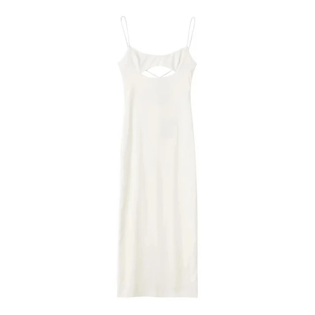 Women Fashion Silk-Satin Solid Midi Dress Vintage Backless Sling Dress Thin Straps Female Dresses
