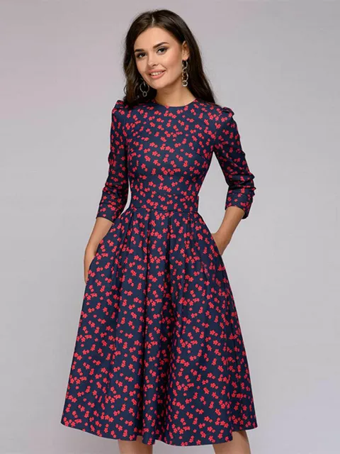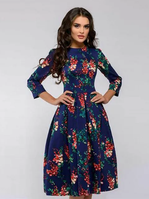 Price range: $60.73 through $62.73Dress Women V Neck Big Swing Vintage Dress Robe Femme Elegant Retro pin up Party Office Midi Dresses