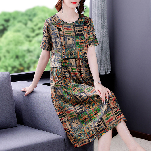Mini Dresses For Women Round Neck Short Sleeve High Waist Spliced Plieasted A Line Dress Female Summer