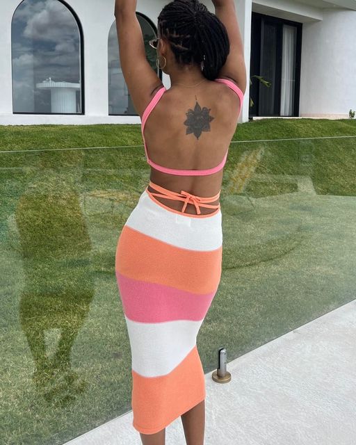 Women’s Suspender Long Dress Fashion Solid Color Hollow Out Backless High Waist Tight Dress Summer Party Dress