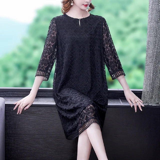 Fashion Silk Dress Women’s Autumn Vintage Round Neck Loose Fit Casual Holiday Dress