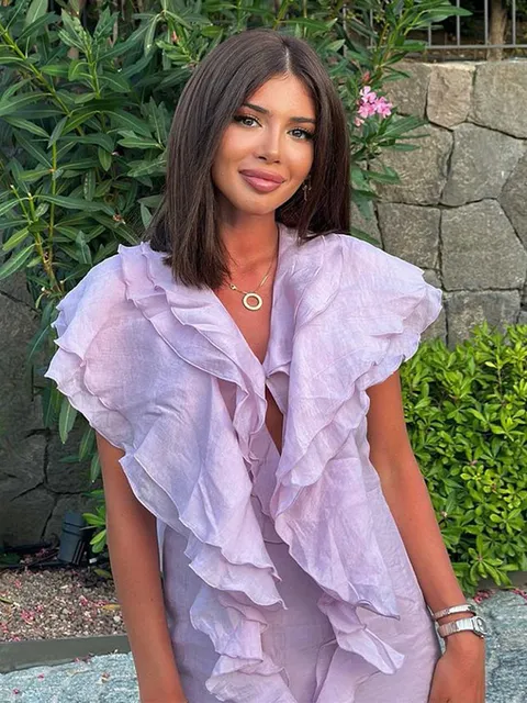 Elegant Ruffles Layer Long Dress Women V-neck Sleeveless High Waist Dresses Fashion Female Evening Party