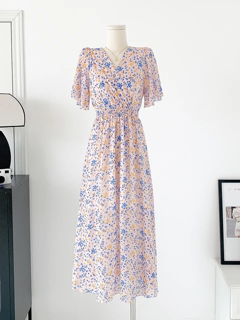 Elegant Women’s Off Shoulder Midi Dress Summer Fashion dresses High Waist Flower Print Short Sleeve Dress Robe Clothing