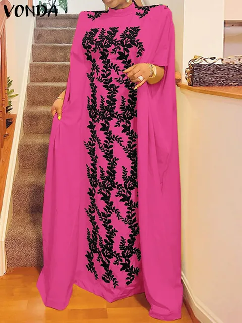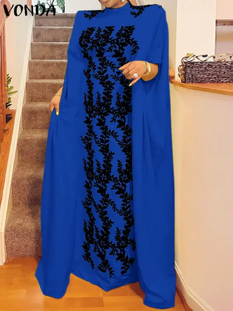 Women Fasihon Shirtdress Lapel Oversized Autumn Cotton Maxi Sundress Vintage Floral Print Sleeve Long Dresses
