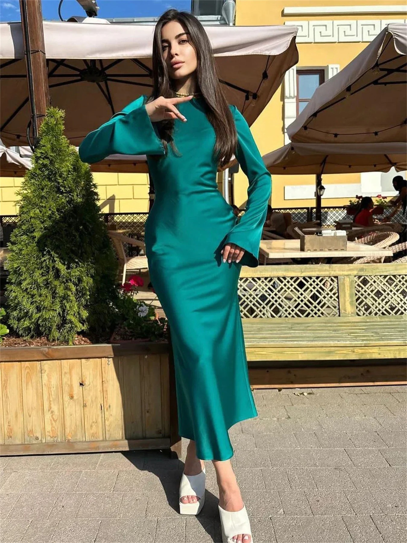 Fashion Maxi Dress Women Elegant Solid Color Evening Dresses Work Split Chic Long Sleeve Clothes Office