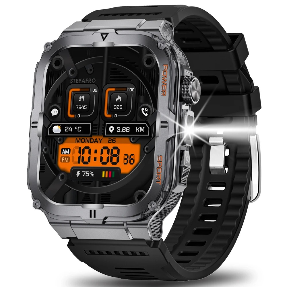 Men’s Smartwatch, Bluetooth Call Tracker, Military Sports Waterproof Watch, Digital Fitness Tracker Smartwatch, LED Flashlight