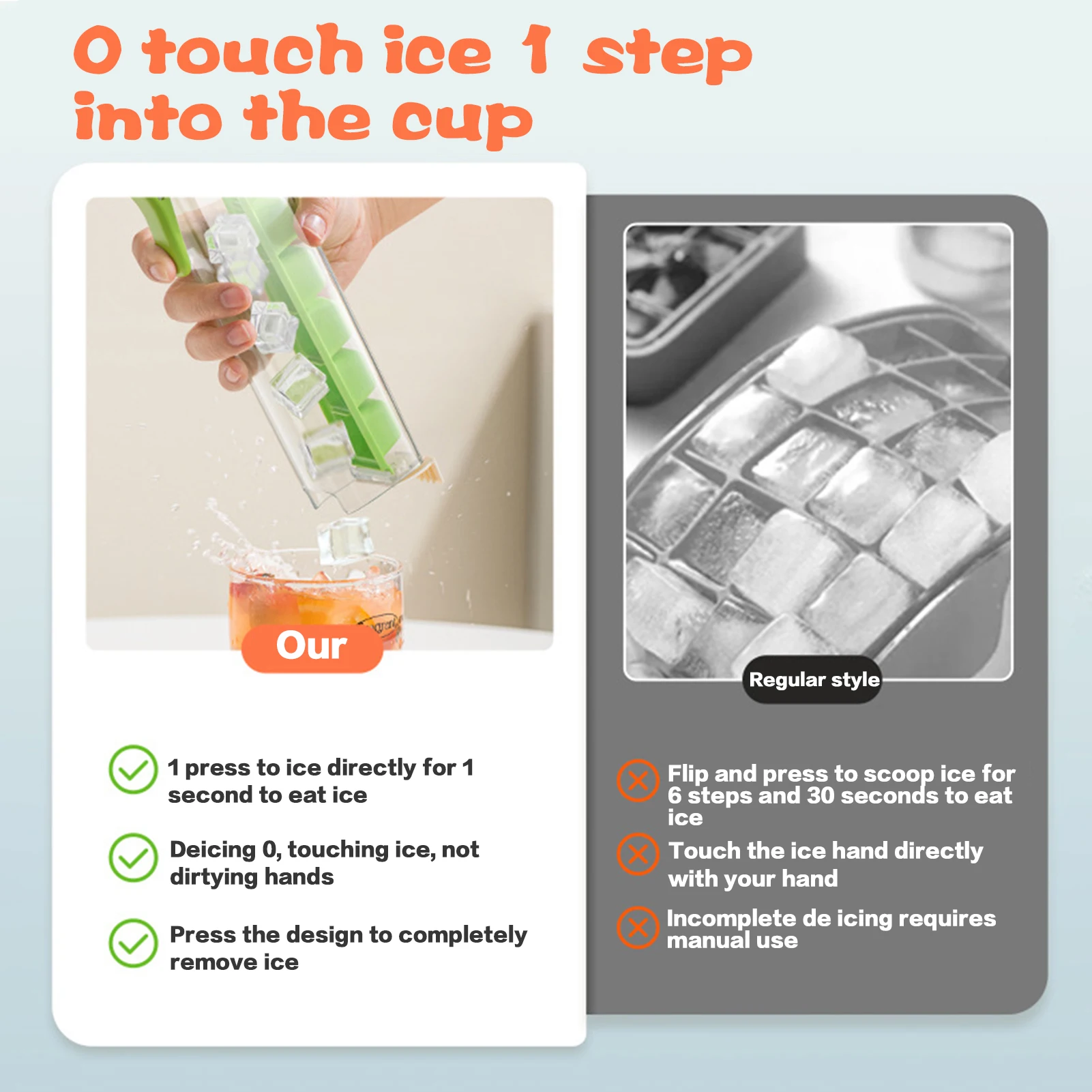 No Touch Push-Push Ice Cubes: The innovative push-push design allows you to release ice cubes without touching them, keeping your hands clean and germ-free.