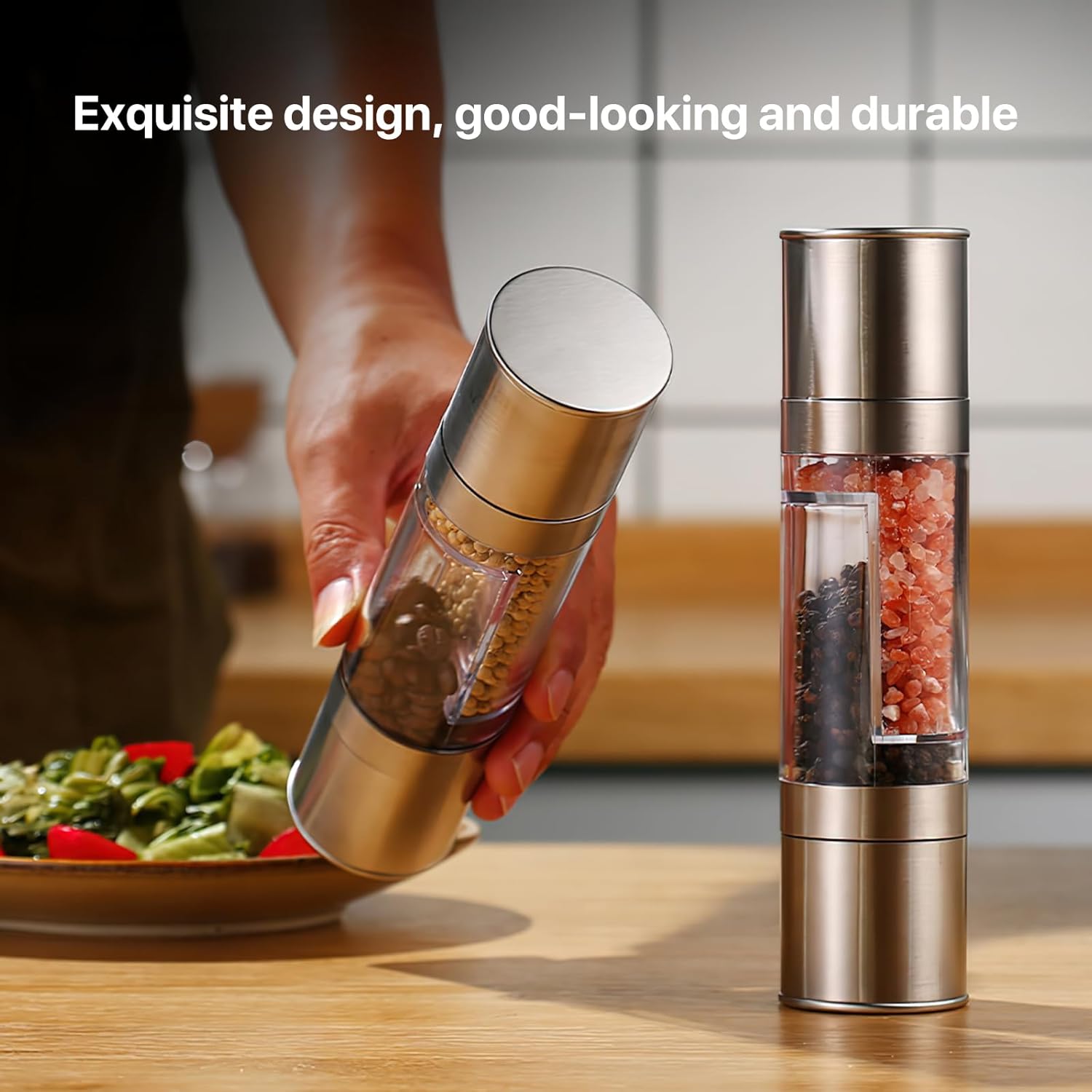 Double the Flavor: Enjoy the versatility of a manual pepper grinder with two seasoning chambers. Easily switch between different spices, ensuring a flavorful meal every time.