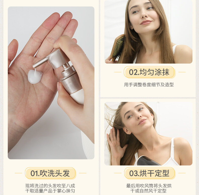 3. Refreshing and no greasy feeling, easy to be absorbed by hair, make hair curly and elastic.