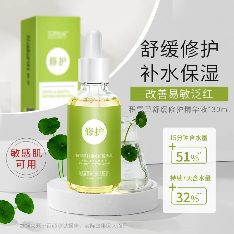 ▶Centella asiatica combined with various plant extracts can help repair redness and fever, relieve stressed skin,strengthen sebum membrane and repair skin barrier.