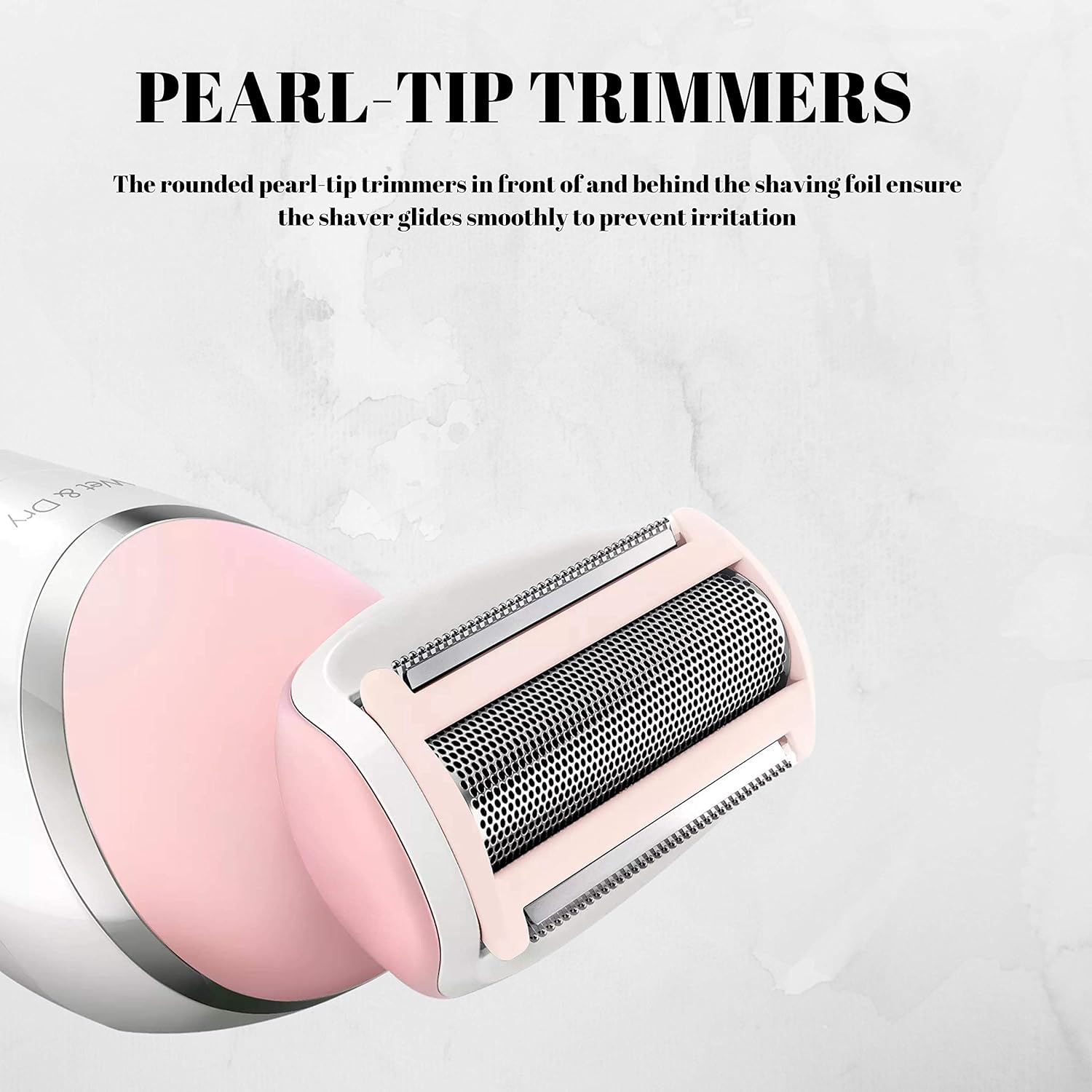PEARL-TIP TRIMMERS – Protect your skin from irritation: The rounded pearl-tip trimmers in front of and behind the shaving foil ensure the shaver glides smoothly to prevent irritation. Trimming comb included to achieve desired hair length
