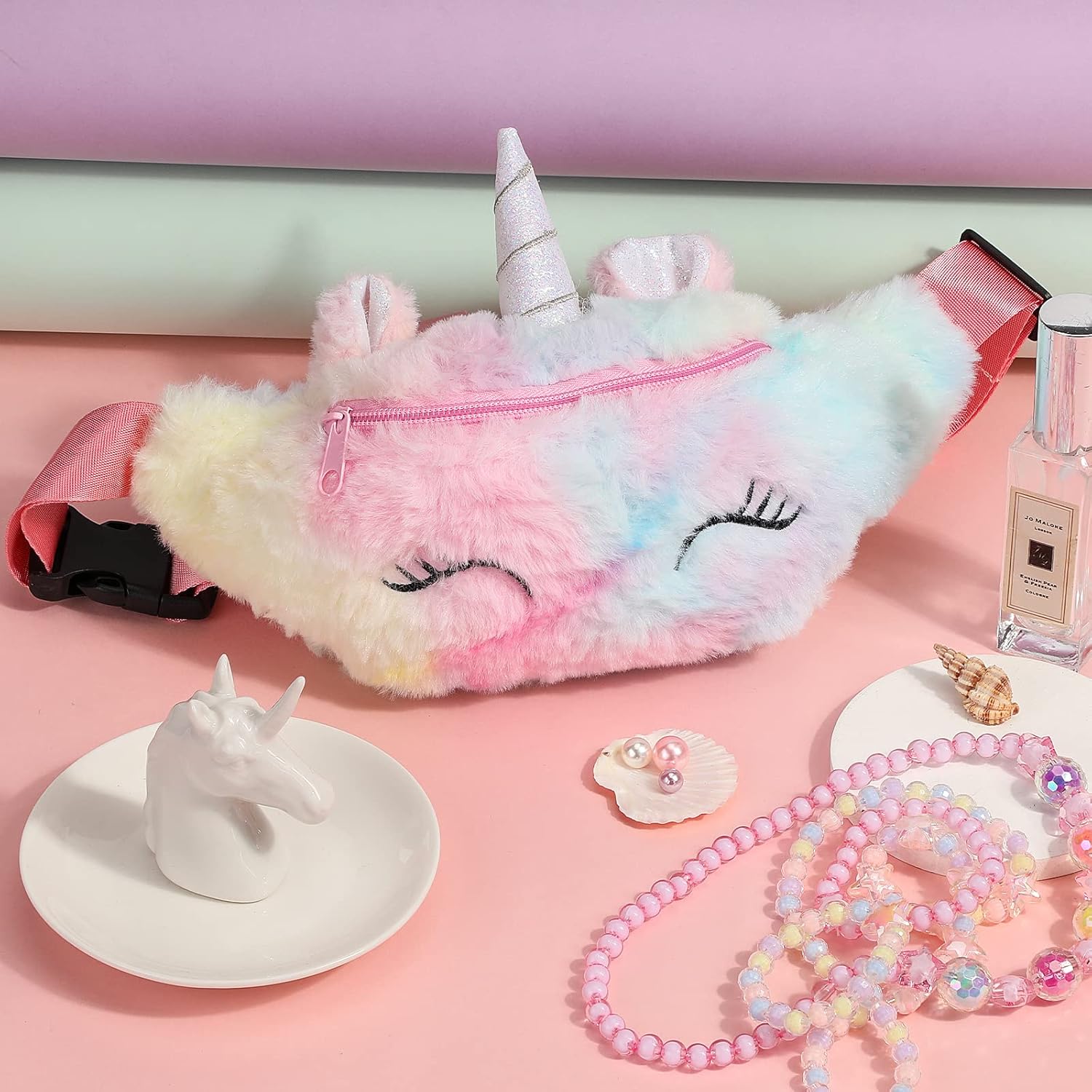 Fashion Girls Shoulder Belt Bags Children Kids Mini Waist Packs Unicorn Chest Phone Pouch Lovely Colorful Fur Waist Purse Pack