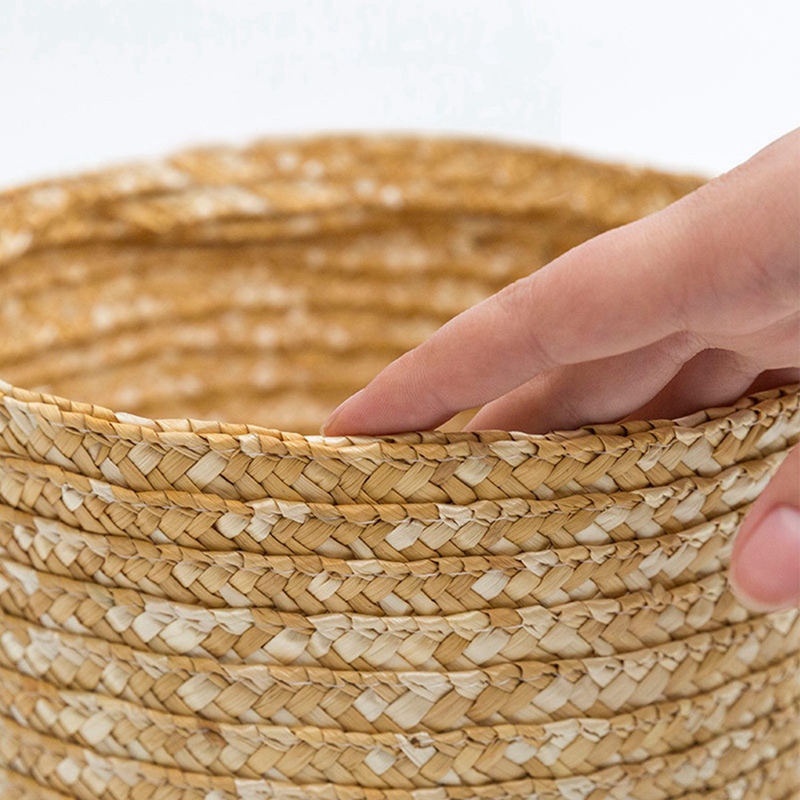 Handmade Straw Woven Storage Basket With Lid Snack Organizer Storage Box Laundry Baskets Rattan Storage Flower Basket