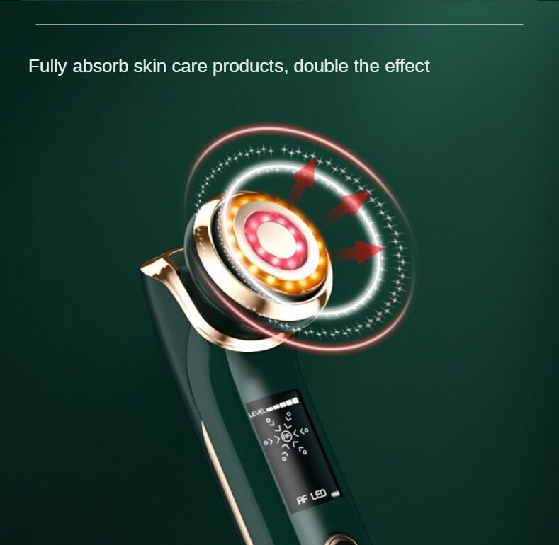 This product is equipped with RF deep temperature, ion cleaning export, ion moisturizing introduction, eye microcurrent care, ultra pulse moisturizing penetration, EMS lifting and tightening, Ice compress, beauty rongguang care, motor vibration assisted cleaning and motor vibration assisted protection wet and other functions of the household beauty instrument. Users can select the combination of various modes according to individual skin conditions and needs nursing procedures.