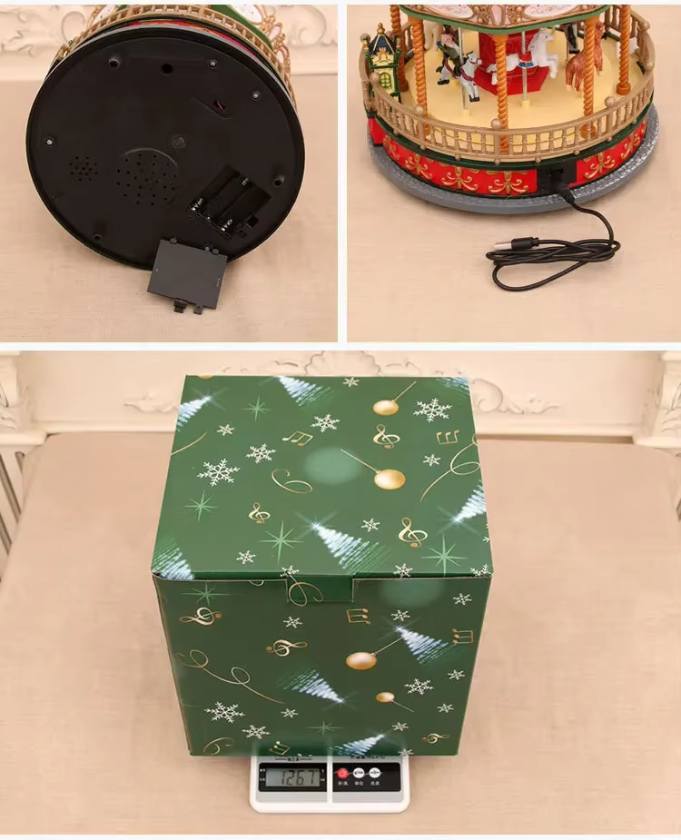 This Christmas music boxes is an essential decoration and gift for the holiday, featuring a spinning that plays music.