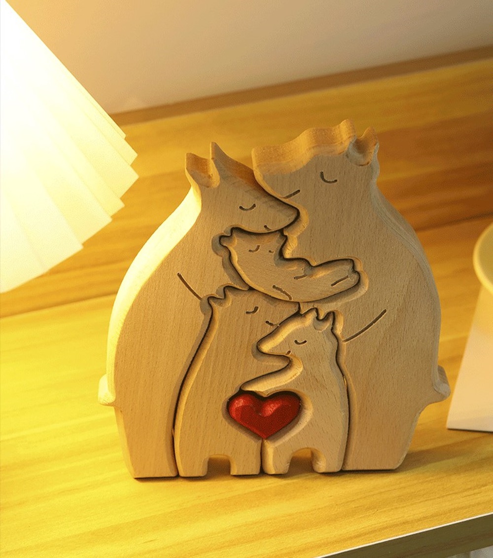 Personalised Hugging Bear Family Wooden Puzzle Ornament Christmas Birthday Gift Desk Decor Figurines Miniatures
