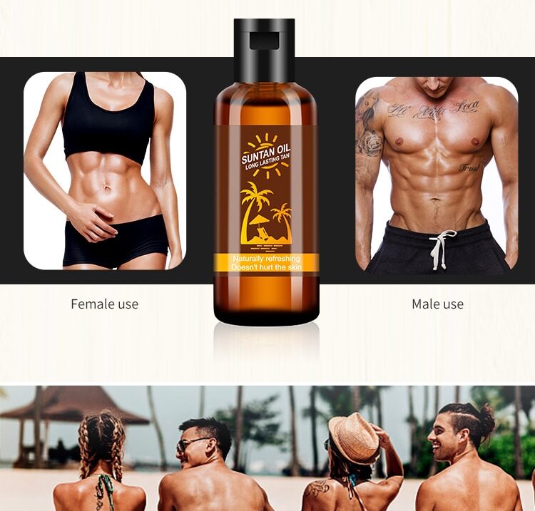 With a good sun lamp or sunbathing, before exposing to the sun, apply an appropriate amount to the skin, massage until absorbed, generally need to be in the sun for 30-120 minutes, gradually increase the time of exposure according to the situation, if you swim or sweat excessively, please wipe it with a towel Reapply after drying.