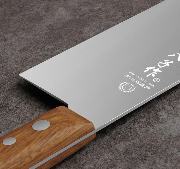 The knife is made from China kitchen knife center,Yangjiang Shibazi is most famous brand of China,the blade of knife made of 30cr13 stainless steel,No cutting edge,specially for make the dough sheet,dumpling,steamed stuffed bun,dessert,ect.