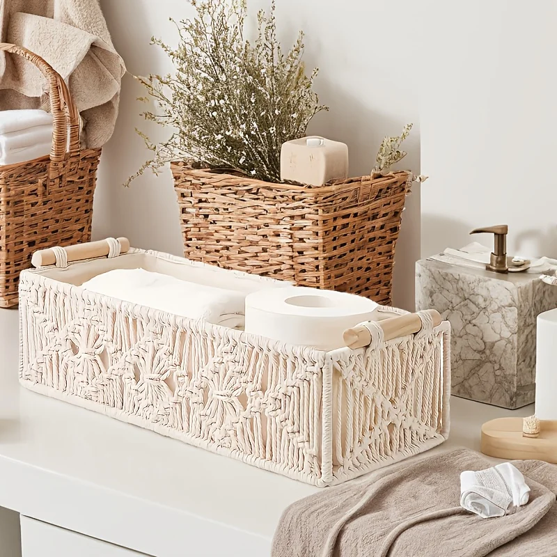 【Wide Application】 These Bohemian baskets are both aesthetically pleasing and functional, perfect for the bathroom, living room, bedroom, and more. Whether it’s for storing toilet paper, towels, cosmetics, toys, aromatherapy supplies, toiletries, and other items, our storage boxes can keep them well organized and clutter-free.