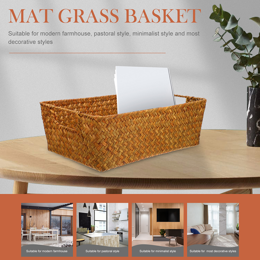 Straw Bread Basket Large Woven Laundry Storage Accessories Box Desktop Fruit Organizing Pantry Wicker Home Supply