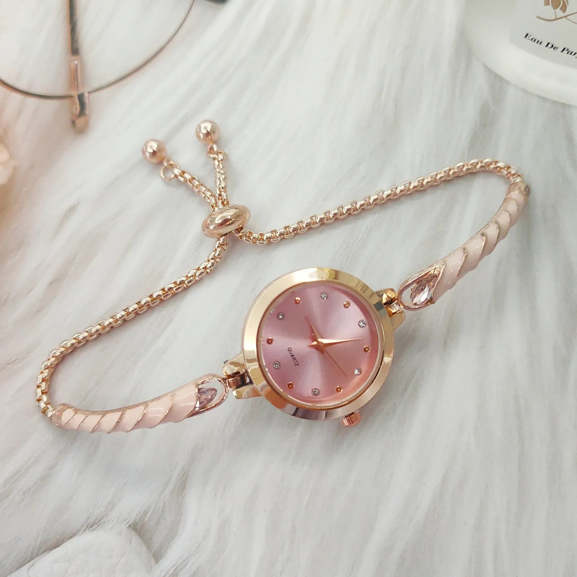 Watch for Women Fashionable Colorful Drill Thin Band Drill Round Women Watch Adjustable PU Bracelet Watch Relojes