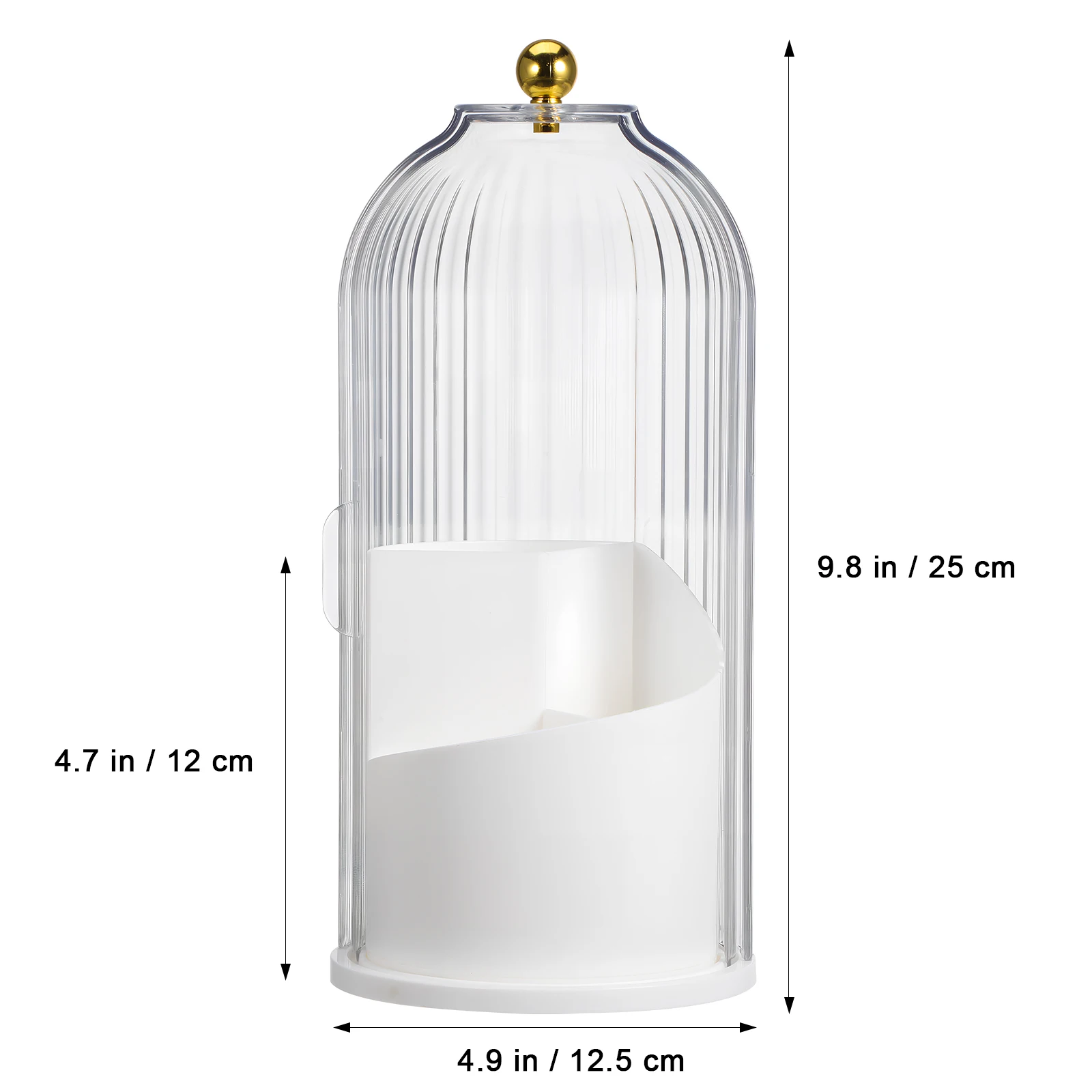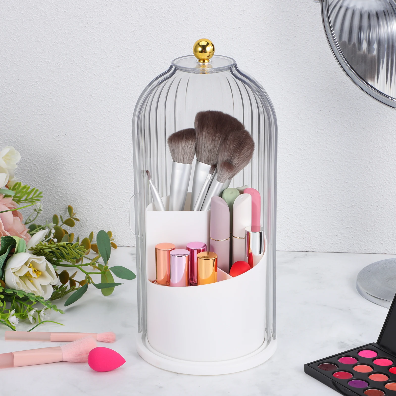 White Makeup Brush Holder with Lid Rotating Transparent Cover Storage Box for Desk Vanity Accessories Large Capacity