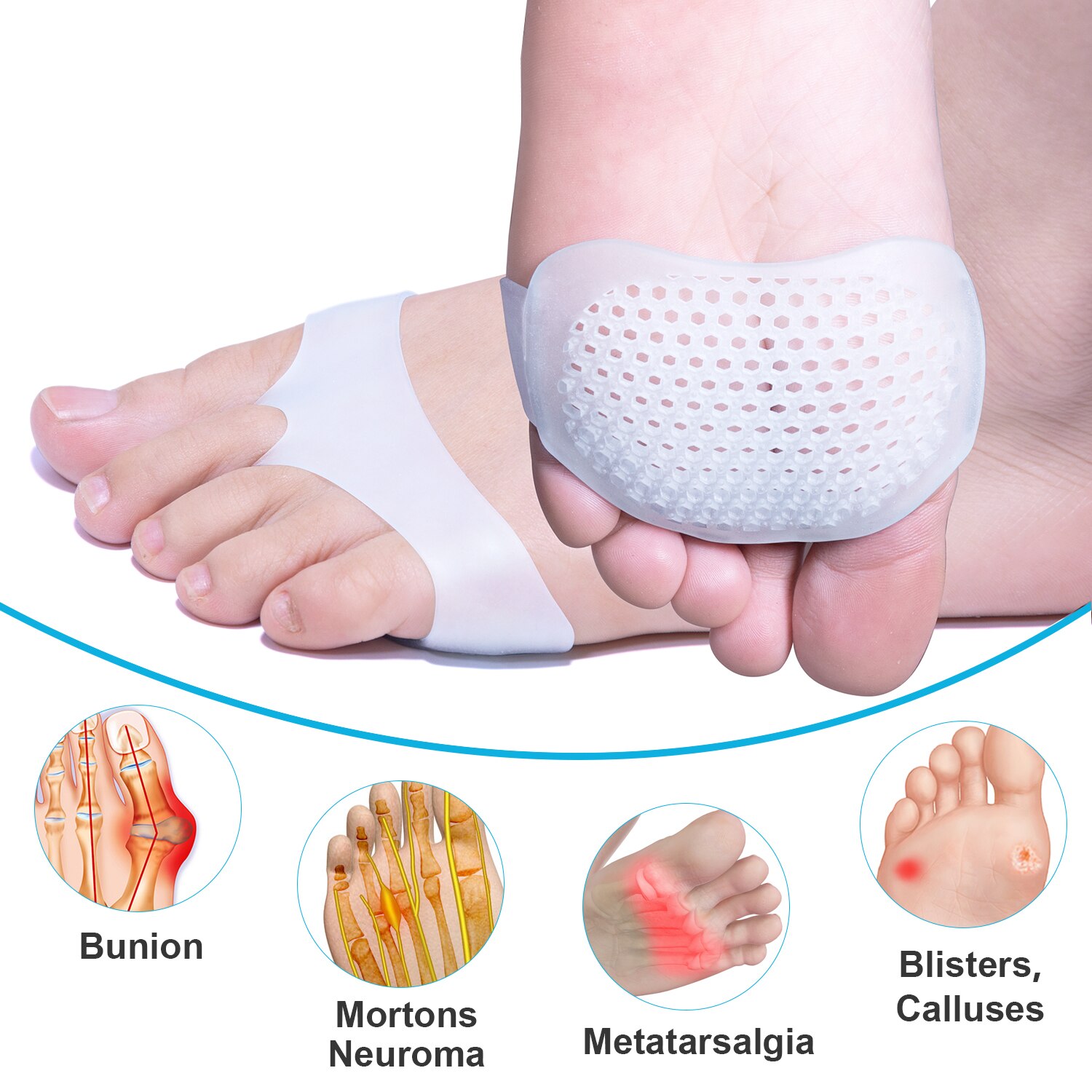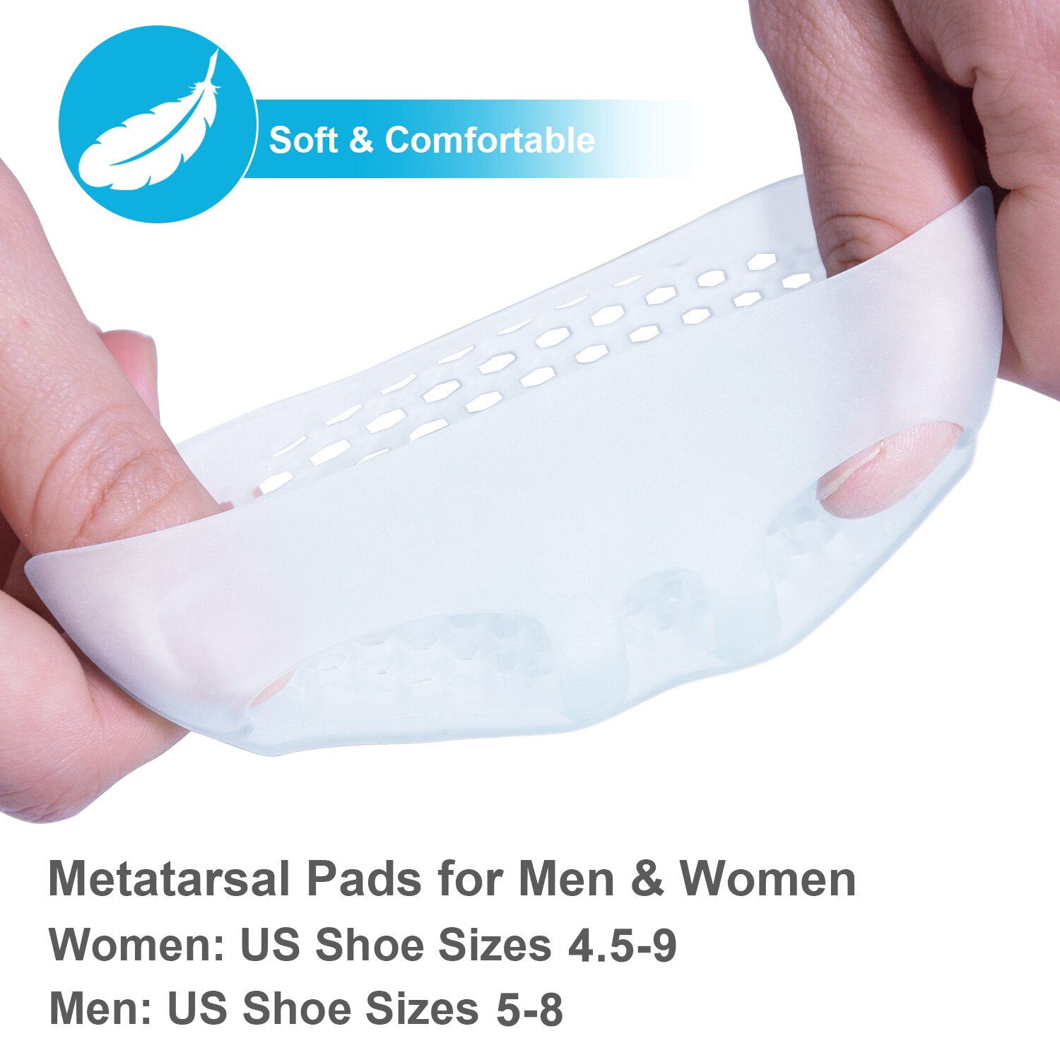 3.Our breathable foot pads spread forefoot pressure out and easy your pain. Plus provide extra cushion to your metatarsal so that to reduce the soreness and discomfort caused by sports or standing.
