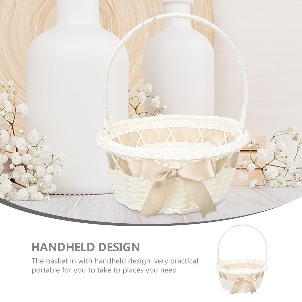 Woven Basket with Handle Hamper Rural Gift Packing Flower Girl Plastic Party Favor Wedding Bride